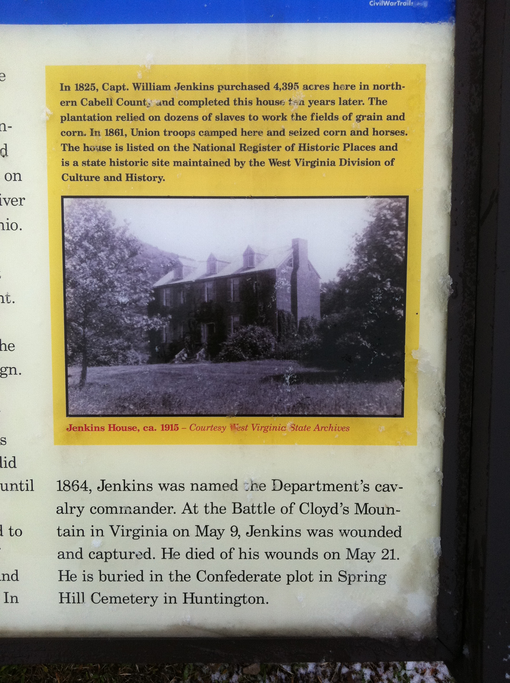 In 1861, the first year of the war, Harrison enlisted with the Fairview Rifles, an unorganized Confederate detachment under the command of Captain Milton J. Ferguson of Wayne County. He fought with them at Barboursville (July 14, 1861), at Scary Creek in Putnam County (July 17, 1861) at Carnifex Ferry in Nicholas County (September 10, 1861) and at Lewisburg in Greenbrier County (May 23, 1862). Most of these engagements were Confederate losses.