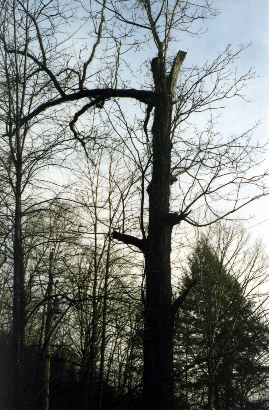 After talking with Oris, we drove back onto Smoke House Fork to locate the site of the old Hugh Dingess home. I wanted to see where Milt Haley had played his last tune. Some twenty minutes later, we parked in a driveway at Bill’s Branch and met Paul Dingess, one of Hugh’s many descendants, and a local resident. Paul gave us a walking tour of the Hugh Dingess farm, showing us what was left of the old Dingess place — a small pile of chimney stones — as well as the “hanging tree” where the mob almost hung Milt and Green. He said his grandfather Millard Dingess had inherited the property years ago. With darkness fast approaching, we thanked Paul and took off down Smoke House.
